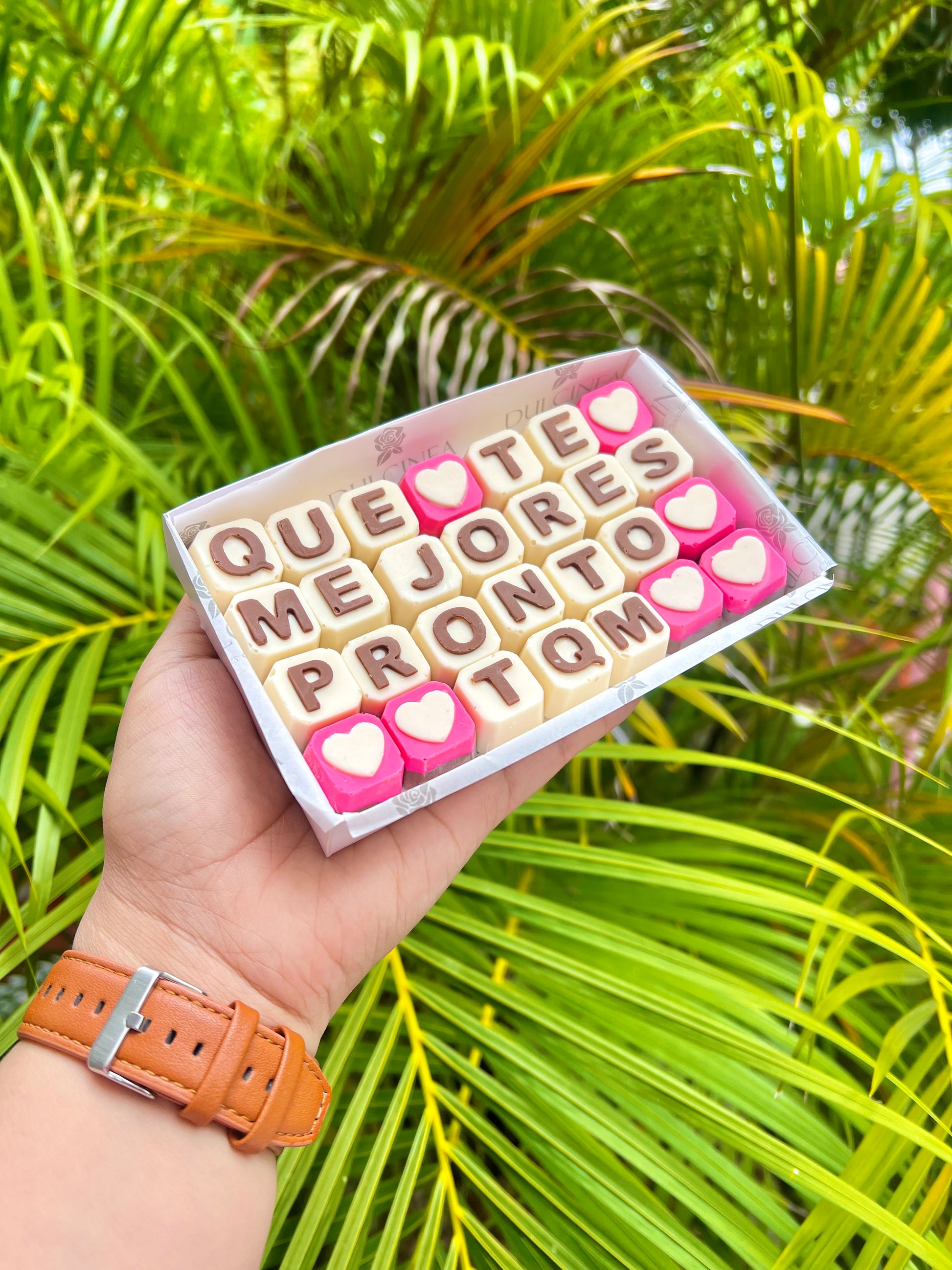28 Cubos de chocolate con mensaje Que te mejores pronto tqm