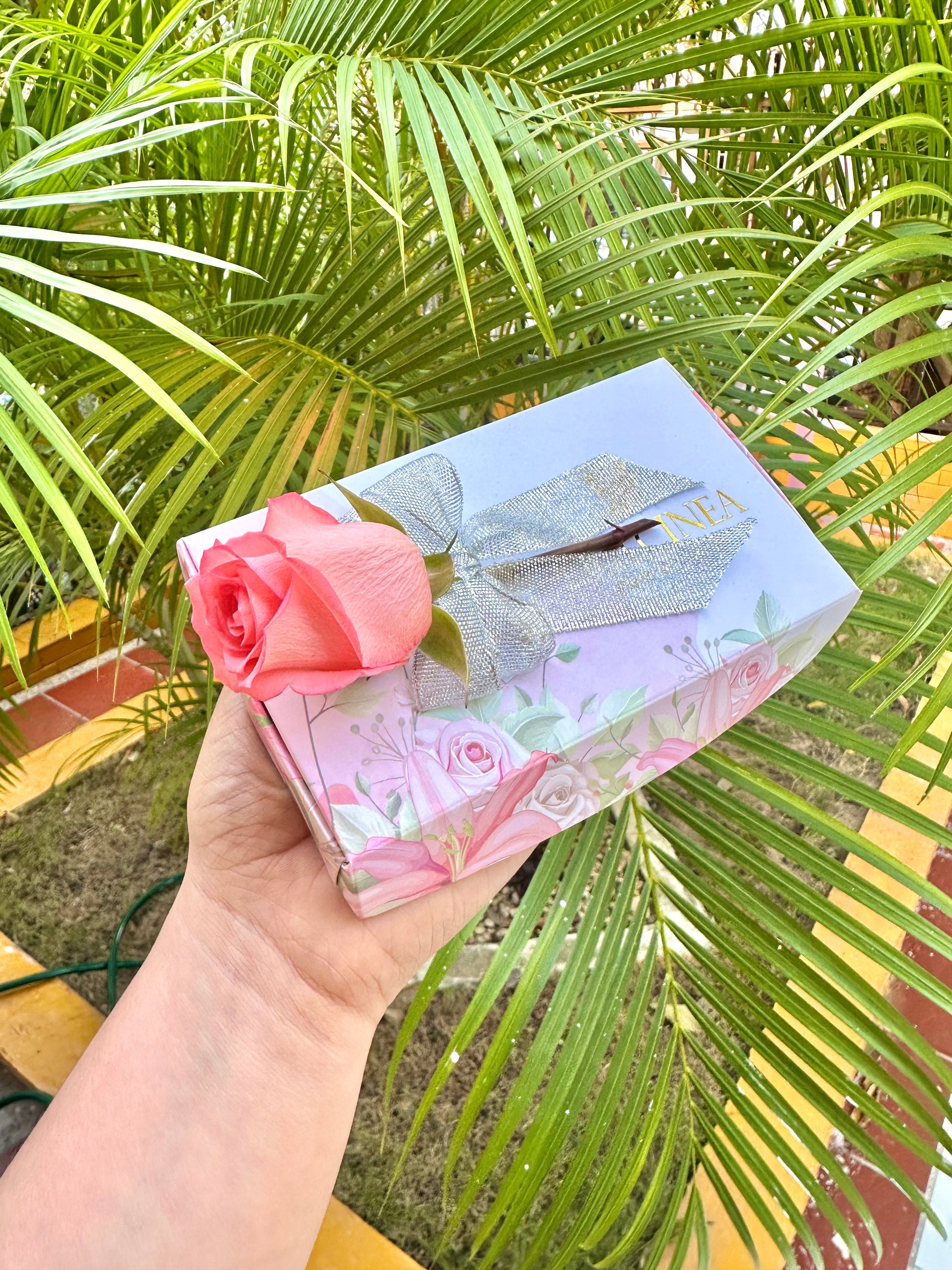 caja decorada con rosa natural